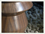 We are very excited with our latest in-house project. Some months ago we approached a local woodturner, here in East Yorkshire, and asked him if he'd consider reproducing the 'Model A' Eames Stool. I explained to him the complexities of the stool - how each stool is solid walnut and is made up of 25 individual pieces - all fused together to give it it's beautiful patterning.