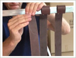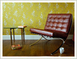 We now offer a Barcelona chair repair service. We are very familiar with the Barcelona chair design. For the past year we have been offering the Bamberg Barcelona chair. We restrap the whole chair with special straps and supply specially tweaked cushions. The intention being to create a vintage looking Mies Van Der Rohe classic chair.